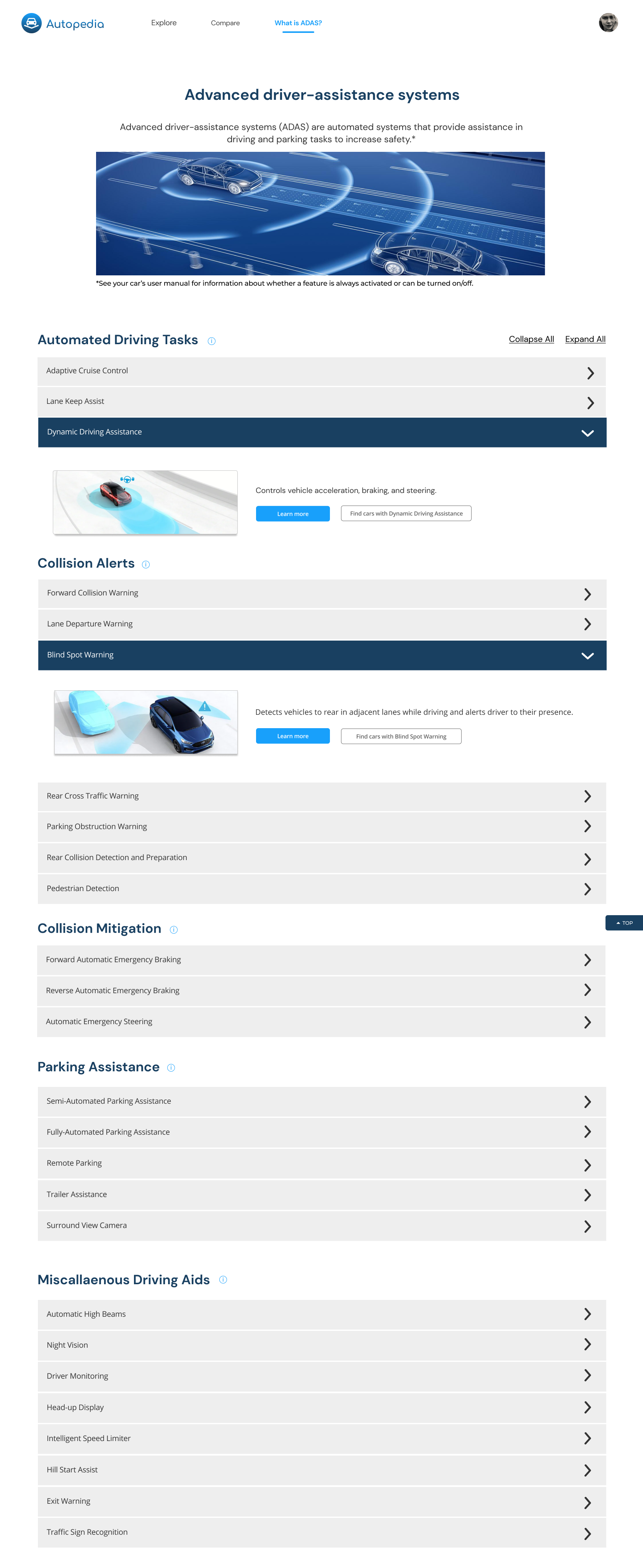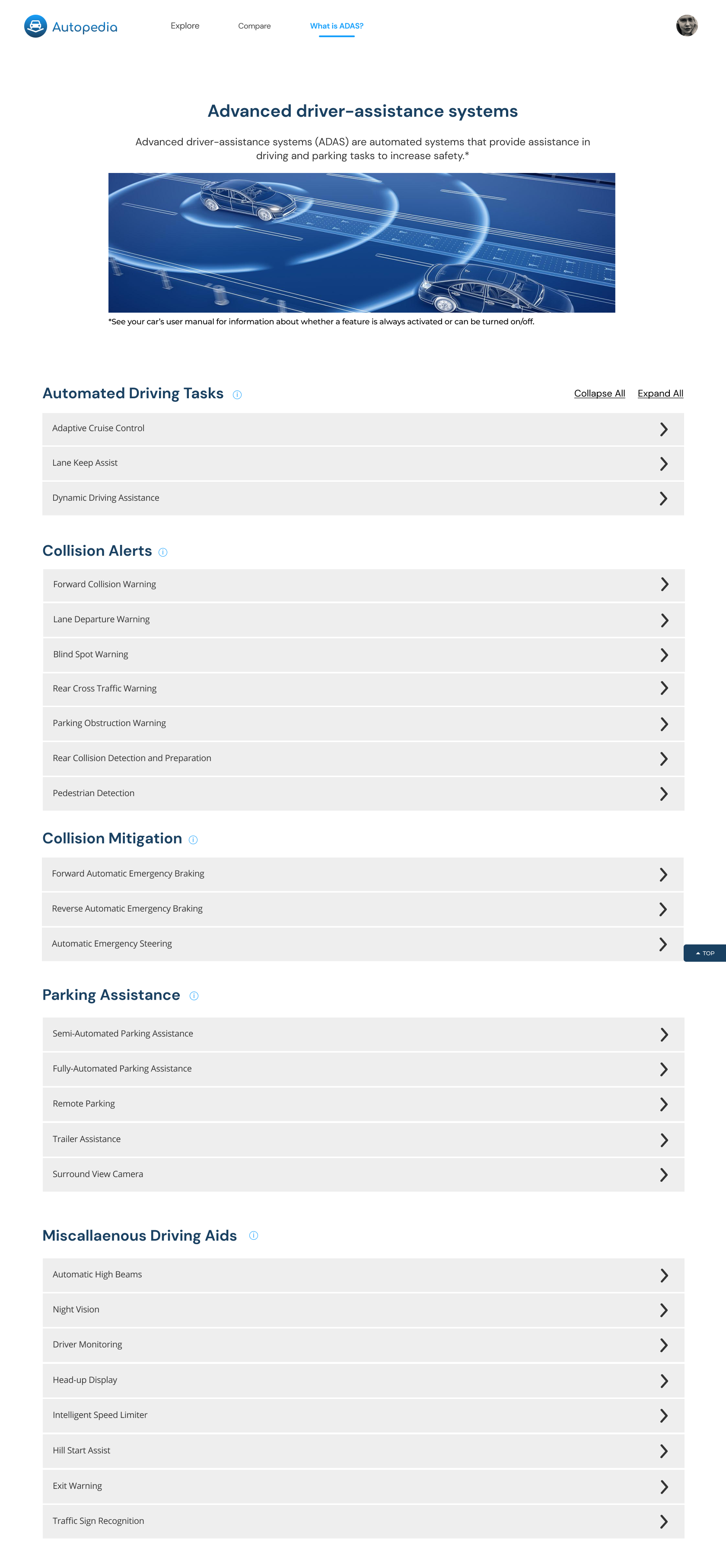Details page to understand how specific ADAS works and how it’s implemented