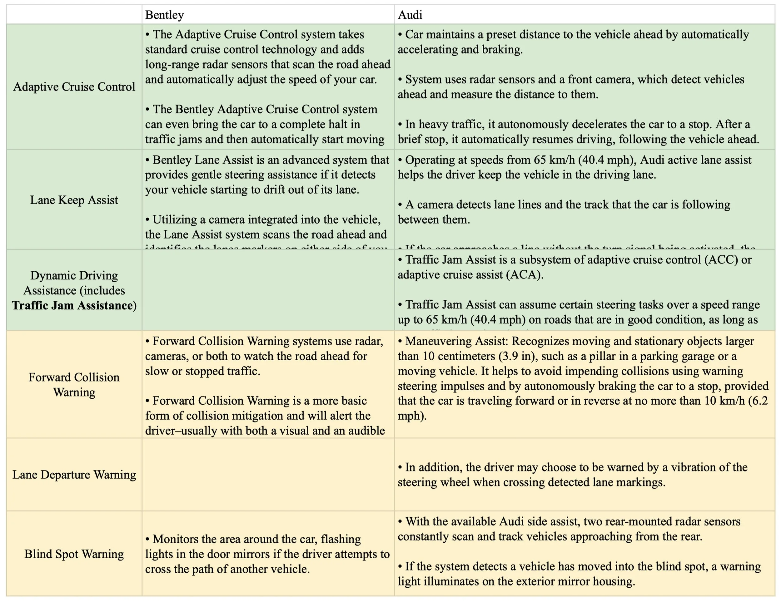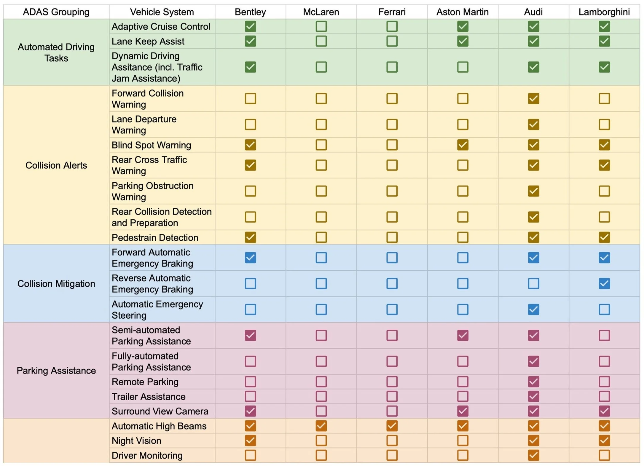 Compare different models/companies based on ADAS features