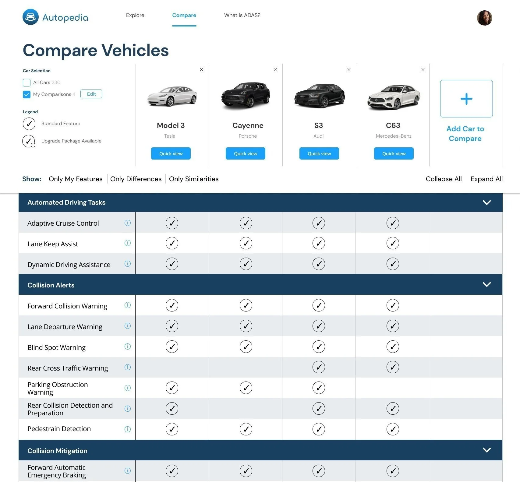 Compare ADAS in different cars