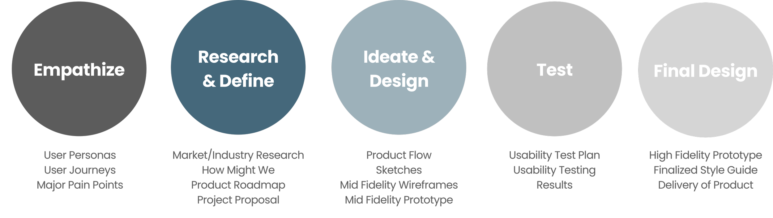 Once we had a good idea of the design direction we wanted to go in, we got to work creating mid fidelity wireframes. Mid fidelity wireframes allowed us to explore content and layout without getting into the specifics of visual design. We knew the next step of the design process was to test this prototype, so we wanted to create wireframes that were polished enough that they seemed realistic, but not so polished that we were bogged down by having to refine frivolous changes when iterating.